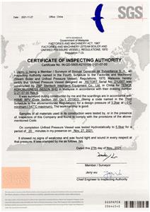 -Pensijilan Antarabangsa:Sijil Kebenaran ASME, Persijilan EU CE, Persijilan EAC Rusia, Sijil DOSH Malaysia, Lesen Pengeluaran Peralatan Khas